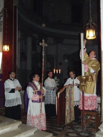 Marzo. Terzo delle Calende di Aprile.Viol. in Off. - Alb. in Miss. Sabbatum Sanctum, privil. De eo, dupl. 1. cl. Statio ad S. Joannem in Laterano. >
