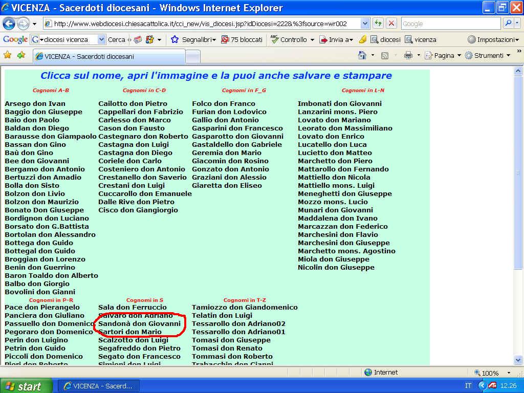 Il sacerdote protagonista dell'episodio, don Giovanni Sandonà, compare in una foto, che si trova nel sito ufficiale della diocesi di Vicenza, non vestito dell'abito ecclesiastico prescritto. Eppure l'immagine si trova nella pagina dedicata ai sacerdoti diocesani, e le foto hanno lo scopo dichiarato di farli conoscere: quindi non preti in vacanza, ma come devono essere conosciuti dai cristiani nell'esercizio del loro ministero. Evidentemente nella diocesi di Vicenza non è così.