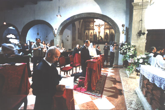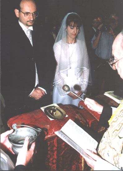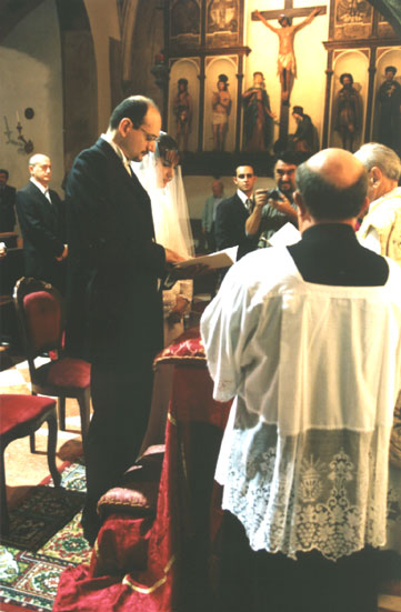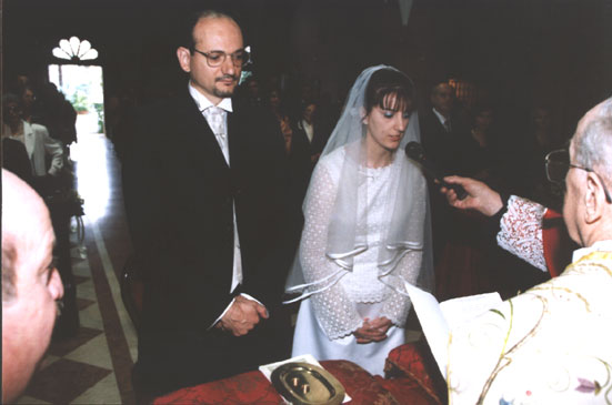 Ho officiato il prof. don Ivo Cisar della diocesi di Concordia-Pordenone, per delega del vescovo di Verona S. E. Carraro il quale aveva dato il suo permesso con decreto del 16 settembre 2002, Prot. 161/02. Don Cisar ha tenuto una seguita omelia sul valore dell'amore nel matrimonio cristiano.
