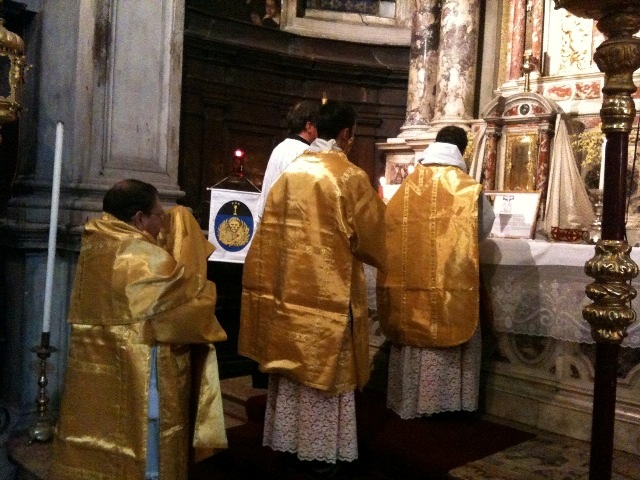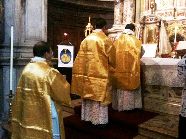 Messa tridentina alla PARROCCHIA DI S. SALVADOR (Campo omonimo, VENEZIA) GIOVEDĚ 7 OTTOBRE, festa del S. Rosario, alle 17, per le cure del Collegio Liturgico dell'Apparizione di San Marco di UNA VOCE VENEZIA Sezione Paolo Zolli.