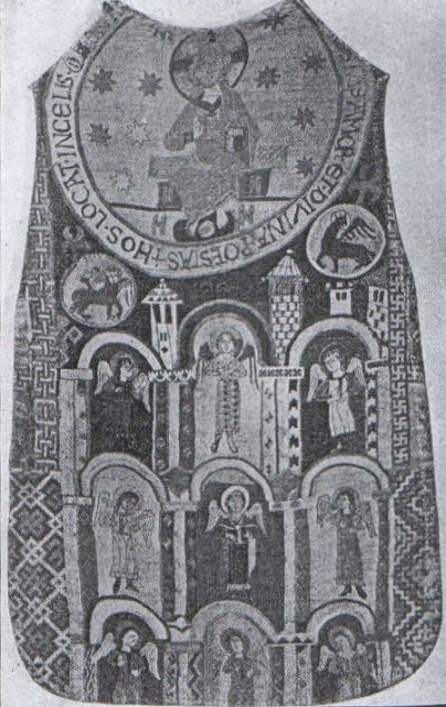 PIANETA - P. ricamata in seta con Cristo in trono, simboli degli Evangelisti e angeli. Opera della badessa benedettina di Göss (Stiria). Cunegonda II (1239-69) - Vienna. Museo storico industriale.
