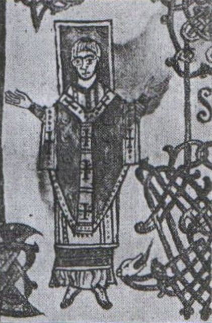 PIANETA - Vescovo con p. Miniatura del Sacramentario fatto eseguire dal vescovo