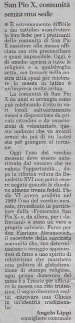 Messa in latino: gli spazi ci sono (Il Piccolo, 29 marzo 2007)