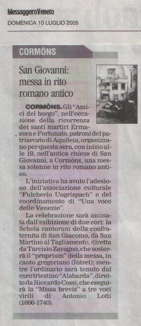 da "Messaggero Veneto" Gorizia, 10 luglio 2005