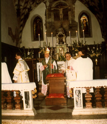 September 17th, 2000 His Excellency Bishop Flavio Roberto Carraro OFM Cap, of Verona celebrated a solemn high Mass, Tridentine rite in the Church of S. Toscana in Verona where traditional Masses have been celebrated since 1994 with the permission of Bishop Attilio Nicora (decree March 23th, 1994, Prot. N. 49/94).